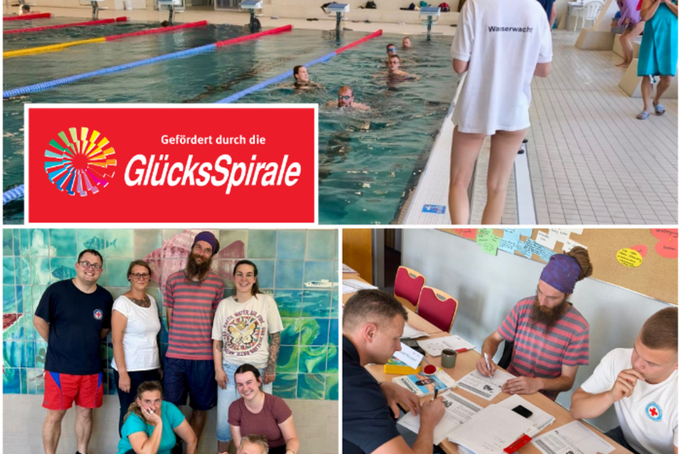 Gefördert über die “GlücksSpirale” absolvieren momentan 5 Erzieherinnen und Erzieher unserer Kita “Kinderland” und dem Hort “Regenbogen” sowie 1 Mitglied unserer Wasserwacht ihre Schwimmlehrerausbildung.