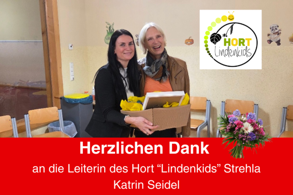 Mit einem tollen Programm verabschiedeten sich die Hortkinder, das KollegInnen-Team, Trägervertreter Falk Glombik und der Bürgermeister der Stadt Strehla Jörg Jeromin bei der Leiterin des Hort “Lindenkids” Katrin Seidel für viele Jahre an der Spitze der Horteinrichtung, die sie mit Herzblut geleitet hat.